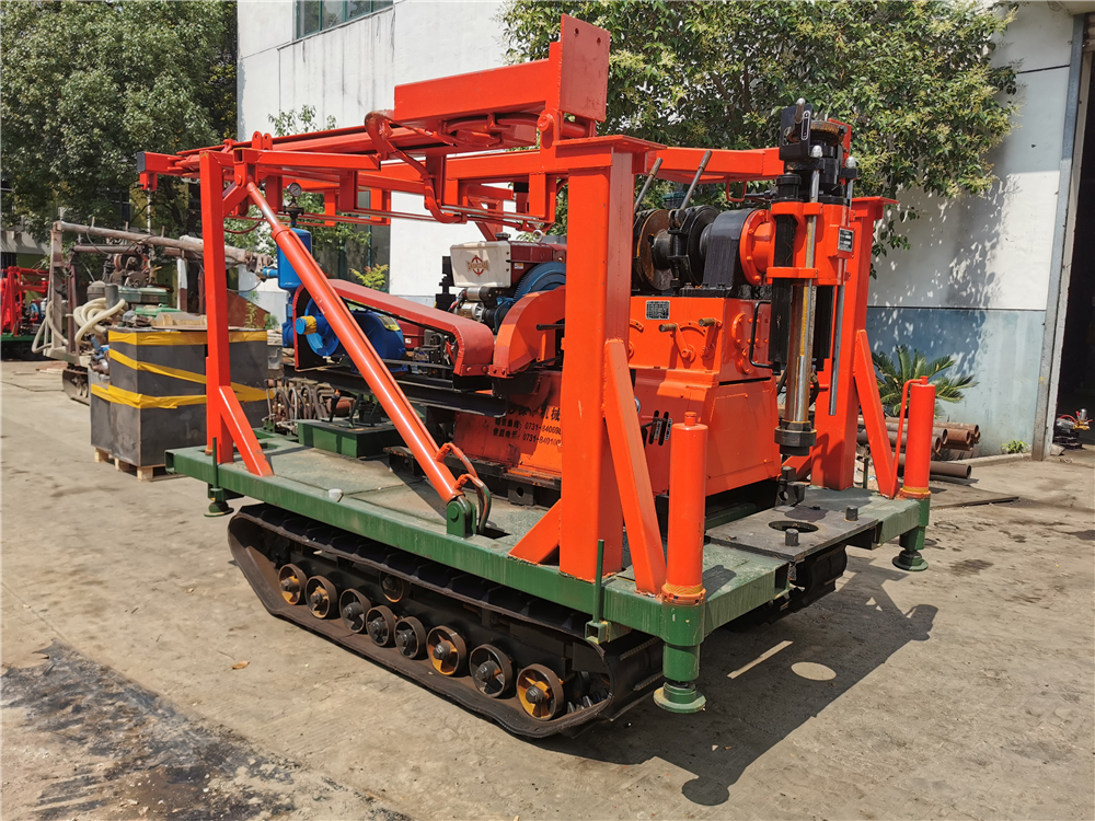 該總成裝有聯合收割機橡膠履帶行走機構和行走操縱系統、,配套柴油機、鉆機平臺、4組自動升高型液壓支撐腿系統、工作平臺、工具箱(座椅)和龍門形全液壓升降起落鉆塔系統(操縱閥、油泵、油缸、支腿、天車和升降組合鉆塔)組成。該系列產品行走平穩,轉向靈活,采用幾型高架底盤,野外通過性能好。